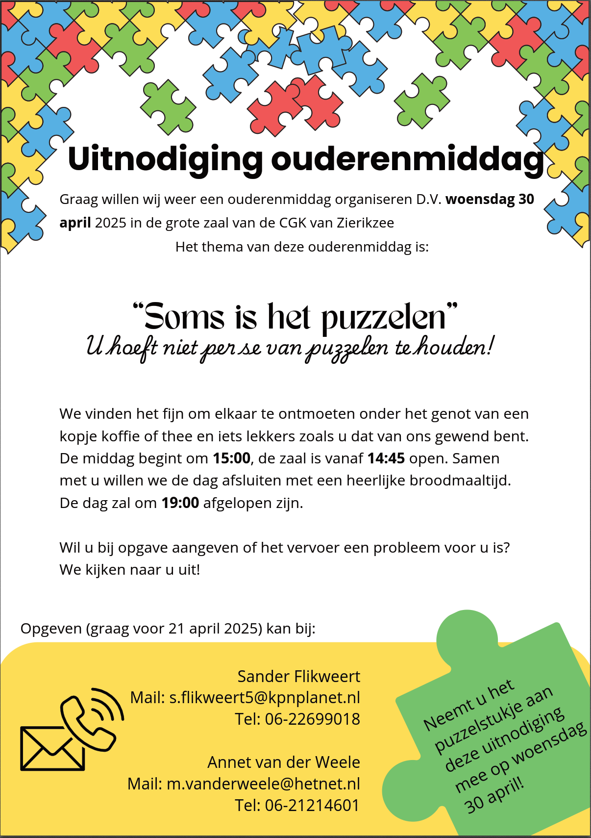 Op deze prikbordpagina staan allerlei verschillende evenementen. Heeft u of heb jij iets wat niet gemist mag worden, stuur dan een e-mail naar